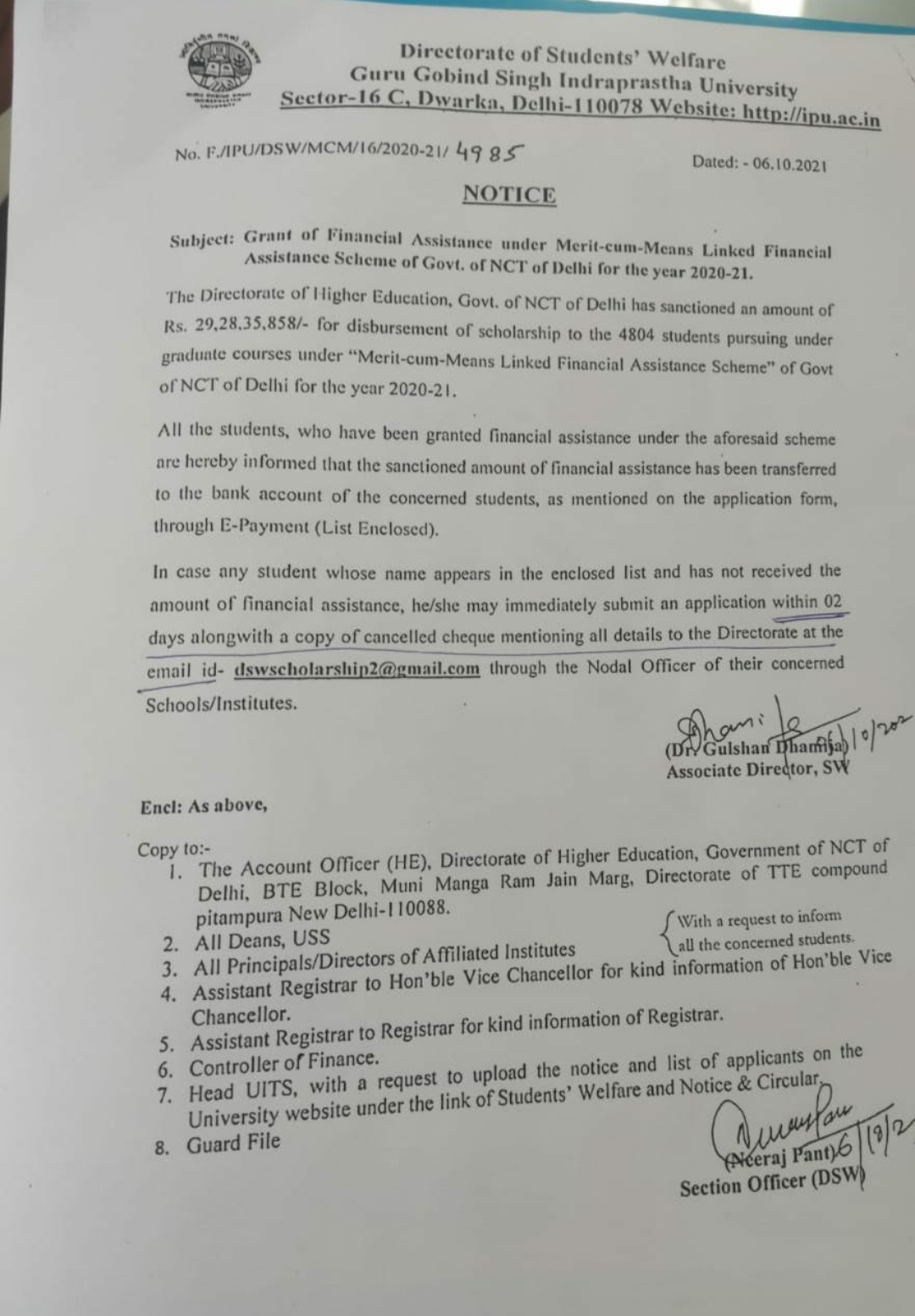 Grant of Financial assistance under Merit Cum Means